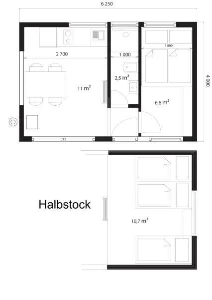 Obergeschoss befindet sich ein geräumiger Bereich von 10,7 m2, welcher als Stauraum oder Schlafbereich genutzt werden kann.