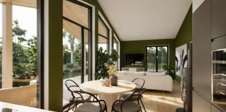der Nature Variante sind die Wände aus Holz. Egal für welche Variante Sie sich entscheiden, Ihre Familie wird sich sehr wohl fühlen.